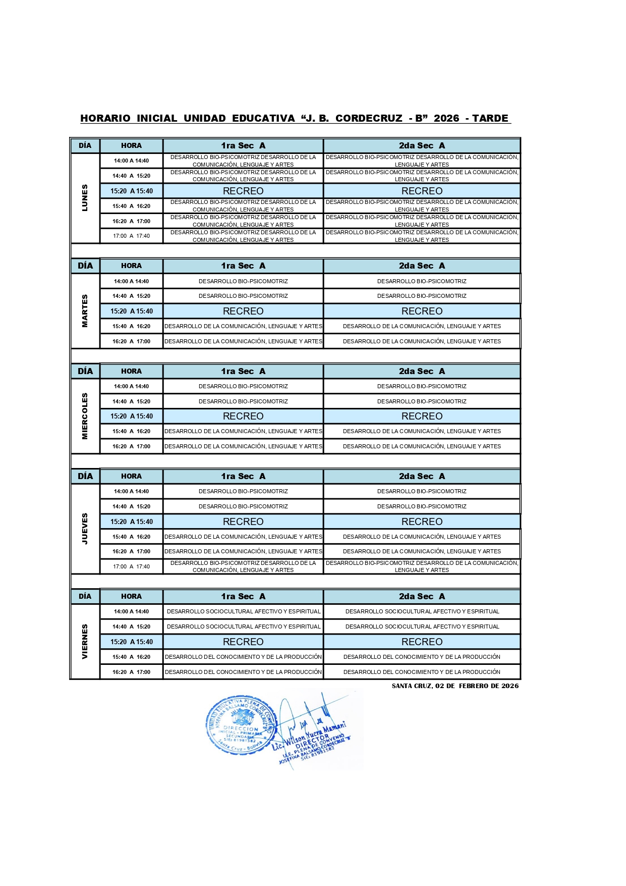 HORARIO INICIAL 2026